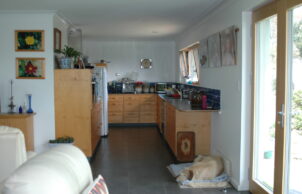 The house site already existed when we bought the land so it was easy to ensure the house was north facing with large glassed area to the north and smaller windows to the south. No window openings on east or west – our 60,000 litre water tank is separate from the house on the eastern side and the double garage is attached to the west.