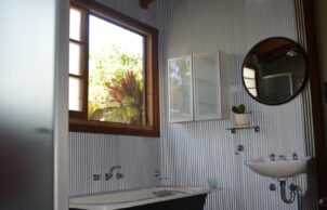 An interesting feature of the house (although you can’t see it) is the northern water wall made of beer bottles full of water. Along the theme of passive house design and water walls is a Trombe wall made from a number of used 44 gallon drums.