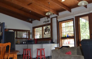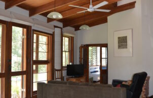 The house is built from mostly recycled material. A relative demolished a house in the central coast so I removed the old hardwood frames and windows etc. and gave them a new life in a new house. The old hardwood timber had been in place for maybe 80 years and hopefully its locked up in the frame of this house for another 80 years.