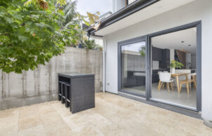 As the house is on a bus route reducing noise from traffic was essential. The backyard was to be modernised with a Japanese style garden for viewing from the sitting area inside.