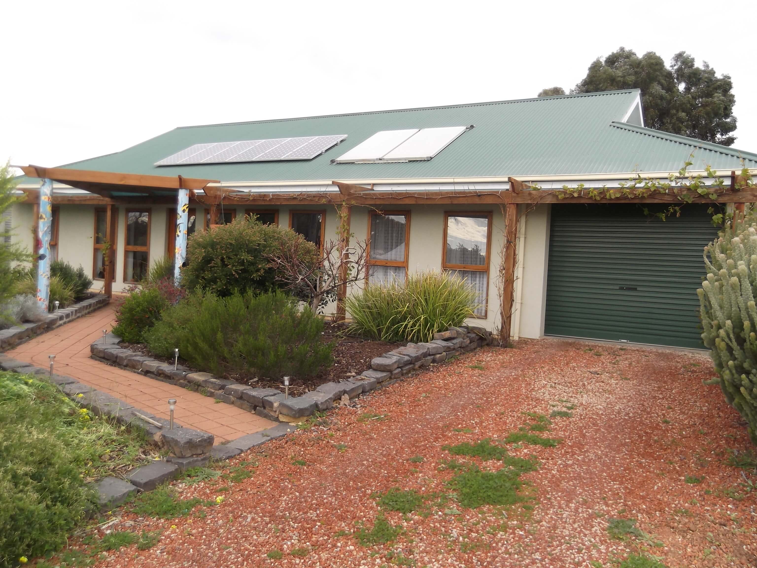 This three bedroom, two bathroom home was completed in 2005 and built by the owners. The build is reverse brick veneer with harditex cladding on the exterior. The rendered interior walls are solid bessa block, providing large amounts of thermal mass. The reinforced concrete floor is tiled throughout.Recycled materials were used where possible. All the windows frames were made by the owner from recycled timber.