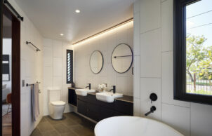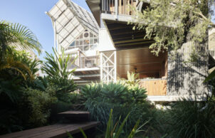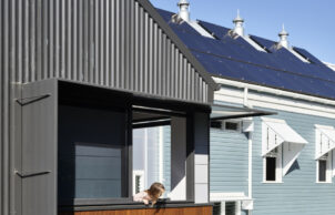 • Reducing the size of the new build component significantly to two smaller pavilions, and designing the home for flexible use and occupation. From a single family, to inclusion of home-office, a granny flat, extended living (e.g. co-house) or separate rental of part of the home. It also includes a lift for potential disability or aged access. This is to help improve the density of our suburbs and save the wasted bedrooms of many of our homes. The home is designed to be able to function with anywhere between 1 and 7 bedrooms, depending on the needs of those living there.