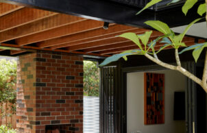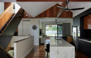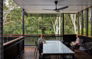 The Brisbane City Plan 2014 was developed following the January 2011 floods, raising the minimum habitable floor level of new residences in the vicinity of waterways. Addressing these requirements created generous undercroft space with shaded welcoming and entertaining zones. Flood corridor modelling confirmed the design’s compliance and resilience, with freely draining undercroft spaces including concrete floors and walls of blockwork and FC sheeted horizontally with GPO’s mounted above 1500mm.