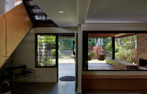 A modest ground level entrance room launches the central stairs allowing ventilation stack effect, passively cooling the house. By creating interactive building edges through new verandas, internal outdoor rooms with stacking feature windows and bridges alongside voids, the envelope responds to the environment, connects with the natural surrounds, and transitions public and private space.