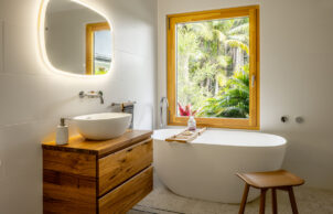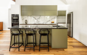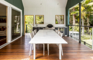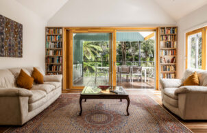 The original cladding was no longer available so retaining every piece that was removed so that extended walls could be blended in was critical to avoiding the waste and cost of recladding the entire home. Strategic walls were clad with a new vertical profile board that contrasts nicely against the wider. Horizontal and more traditional weatherboards.