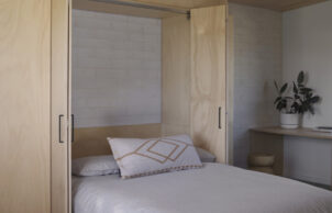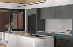 UPVC double glazing, reverse-veneer construction and a burnished slab help to keep the home constantly warm in winter and strategically placed openings capture the evaporatively cooled breezes from the pond to help it stay comfortable in summer. Fully electric, the photovoltaic array generates more energy than the house uses from the grid with a solar diverter and smart programme maximising green power for water heating.