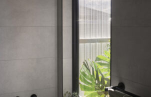 Internal spaces are deliberately modest in area but generous in volume. The long corridors required for a courtyard form were treated as an extension of adjacent spaces, providing utility of their own. Wet areas create a buffer between the two wings, opening onto a private internal garden.