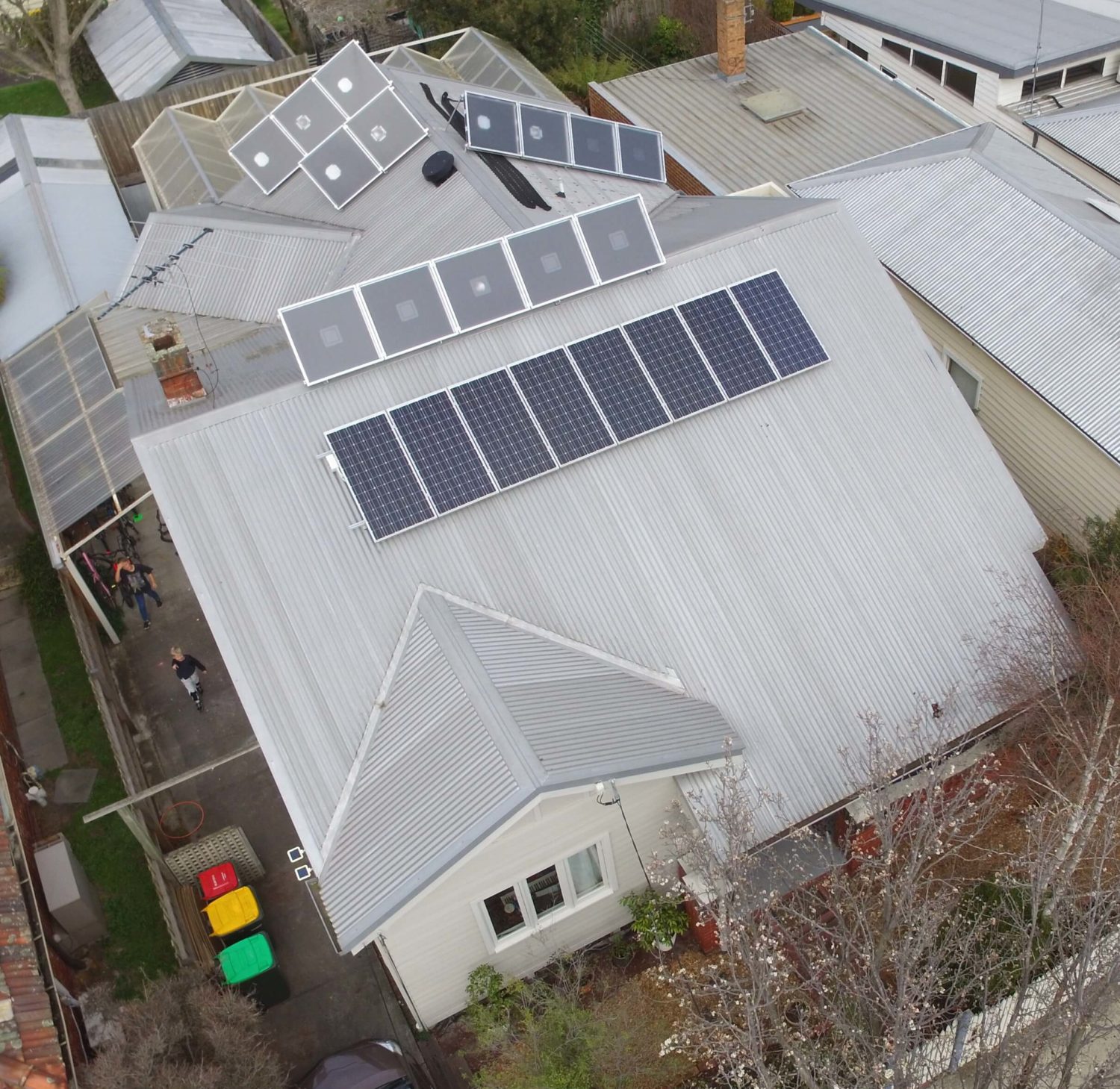 Weatherboard Edwardian/Californian front with a late 90’s extension retrofitted with a Solar Air Heating, night time summer ventilation and day time attic ventilation system from www.heatwithsolar.com.au, installed by www.pythonsolarheating.com.au.