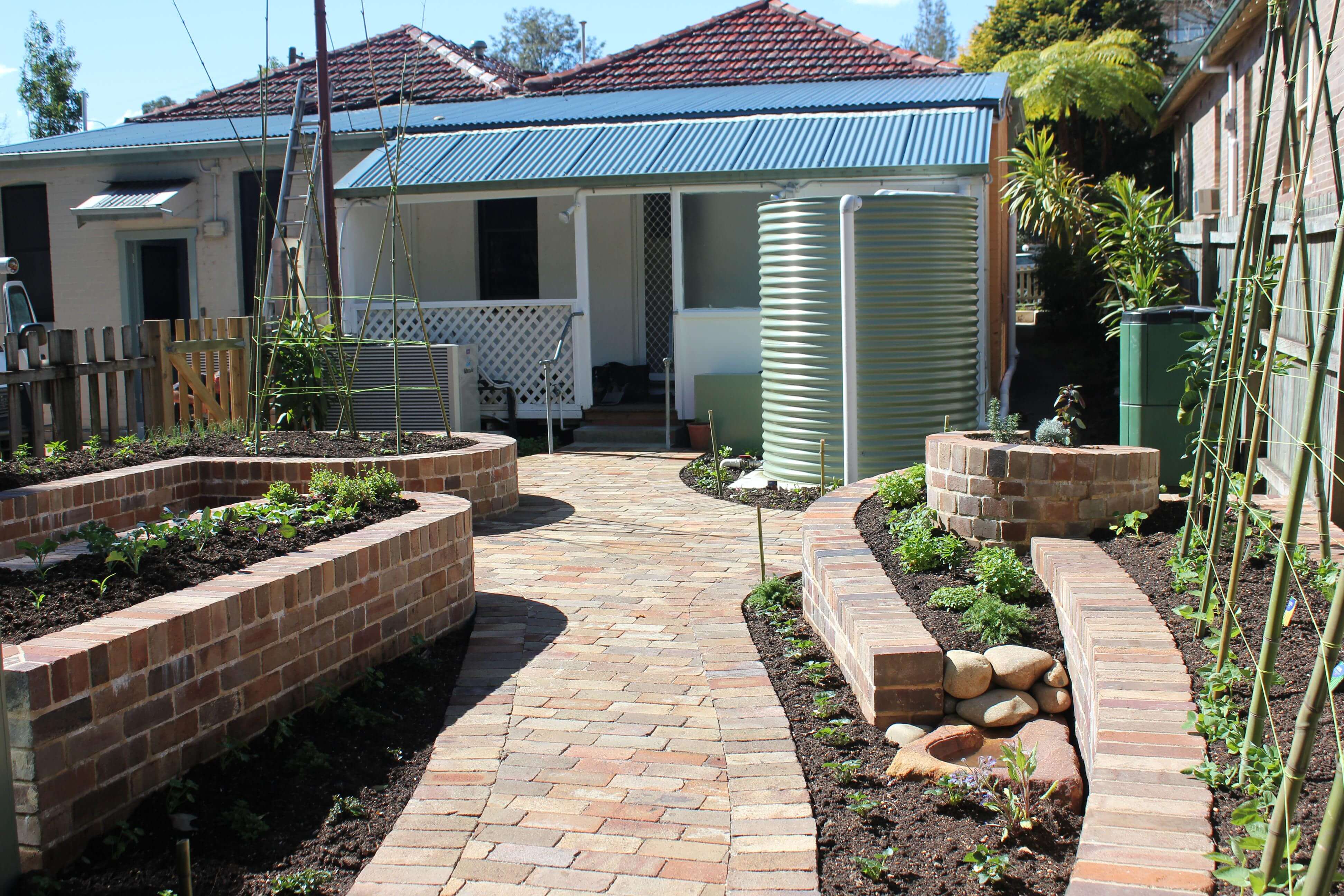 During construction, the reuse of materials was a priority. Doors, frames, windows, architraves and even desks were reused within the building and bricks from internal walls that were removed were used in the rear garden as retaining walls and pathways.