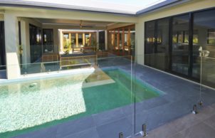 A centrally located pool also aids in the cooling process as well as courtyards with tropical plantings.