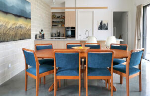 We planned our Eco Beach House during Melbourne’s lockdown 2020-2021. We started with one of the pre-approved designs from the Cape Ecovillage – the Mindil design (architect Adam Dettrick). We made some alterations to the floorplan in consultation with our builders, TS Constructions. The 4 bedroom/2 bathroom house was built January 2022 – June 2023.