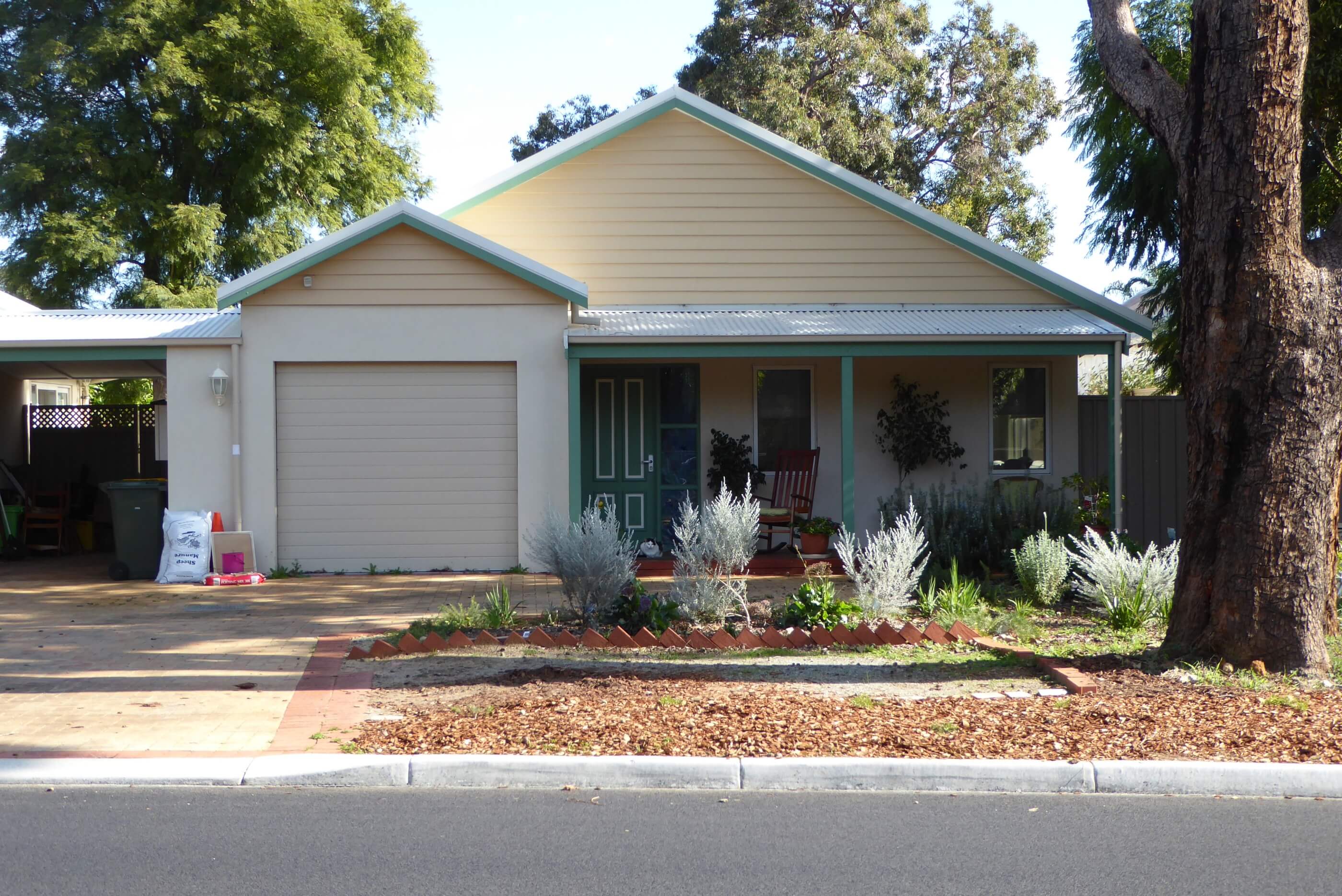 Space for edible garden and native garden. Design needed to be sympathetic with the heritage listed streetscape of this part of Kelmscott hence the verandahs facing the street and the cottage feel to the design. This enhances the interaction with the street life and neighbours. No solid walls facing the street and isolating the residence from the community. The development has allowed the owner to live in a comfortable new home and earn an income from renting the new granny flat and refurbished existing home.