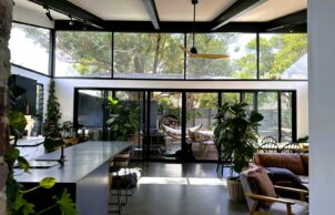 A rear extension was designed with a soaring raked ceiling to the North, double-glazed windows, an insulated thermal mass concrete slab, cross-ventilation, a recycled reverse brick veneer wall, and eaves designed for optimal performance in summer and winter. Bricks from the original demolition were reused and low and non-VOC product used throughout. The extension consistently sits above 22 degrees in winter, and is effectively cooled with cross-ventilation in summer without the need for mechanical air conditioning or heating.