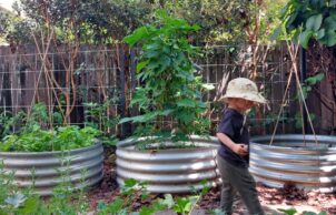 A small garden with a few quails, and access to a worm farm, helps to reduce waste while providing fruits, vegetables, herbs, eggs and a leafy outlook.