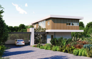 This home features a simple, mid century modern aesthetic to reference the local area vernacular housing.