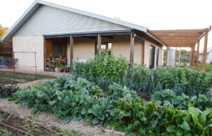 This small strawbale house is our first home, after years of planning (and watching too many episodes of Grand Designs). We wanted something super energy efficient, relatively low cost, and filled with natural materials. It’s two bedrooms, one bathroom, and has both a mudroom and a pantry. Our other priority for the block was a generous productive garden, so we prioritised that first (east and north aspects). We’ve been in the home over two years and it’s performing and feeling great.