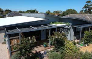 Ruth and James came to GOODHOUSE for a good house. They were keen to build their retirement home on an accessible block in a central location, close to services and family. They were very keen to build a quality home that considered regenerative design principles applied to the whole site. It was important that their home was energy efficient and thermally comfortable, and that their garden was a haven for them and added value to the broader environment.