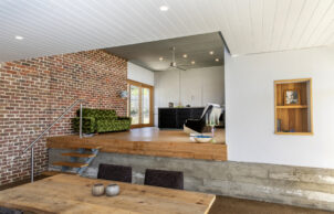 The most prominent materials we have used are; concrete, reclaimed bricks, Australian hardwood, steel, and untreated pine. Some elements in the home have been reused like; bedroom windows, the internal timber cladding and rejected bricks. These items were collected from several salvages. The spacious quality of the main living area allows the northern sun light to enter deep into the home. The living space can be used in different set ups (family home, working from home, etc.)