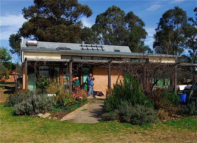 The EarthCare building utilises passive solar design, and a variety of building materials and techniques to demonstrate sustainability options in domestic and commercial construction. There are walls of rammed earth, mud brick and straw bale.