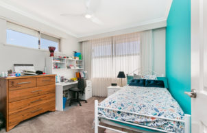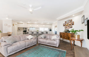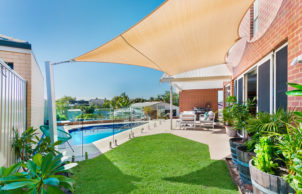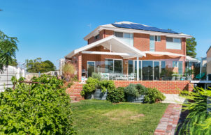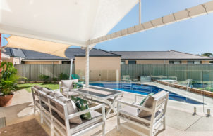 Shade sails have been installed to the alfresco area which are erected in summer to protect the living areas from Perth’s hot summer sun. These are removed and stored during the winter months to allow the sun to flood through the home and heat the house using thermal passive principles. The home has also been fitted with insulated roller shutters to both the East and West side of the home to aid in keeping the heat out in the summer months.