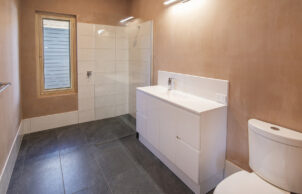 lime), burnished concrete floors, Accoya timber double glazed windows and thermally