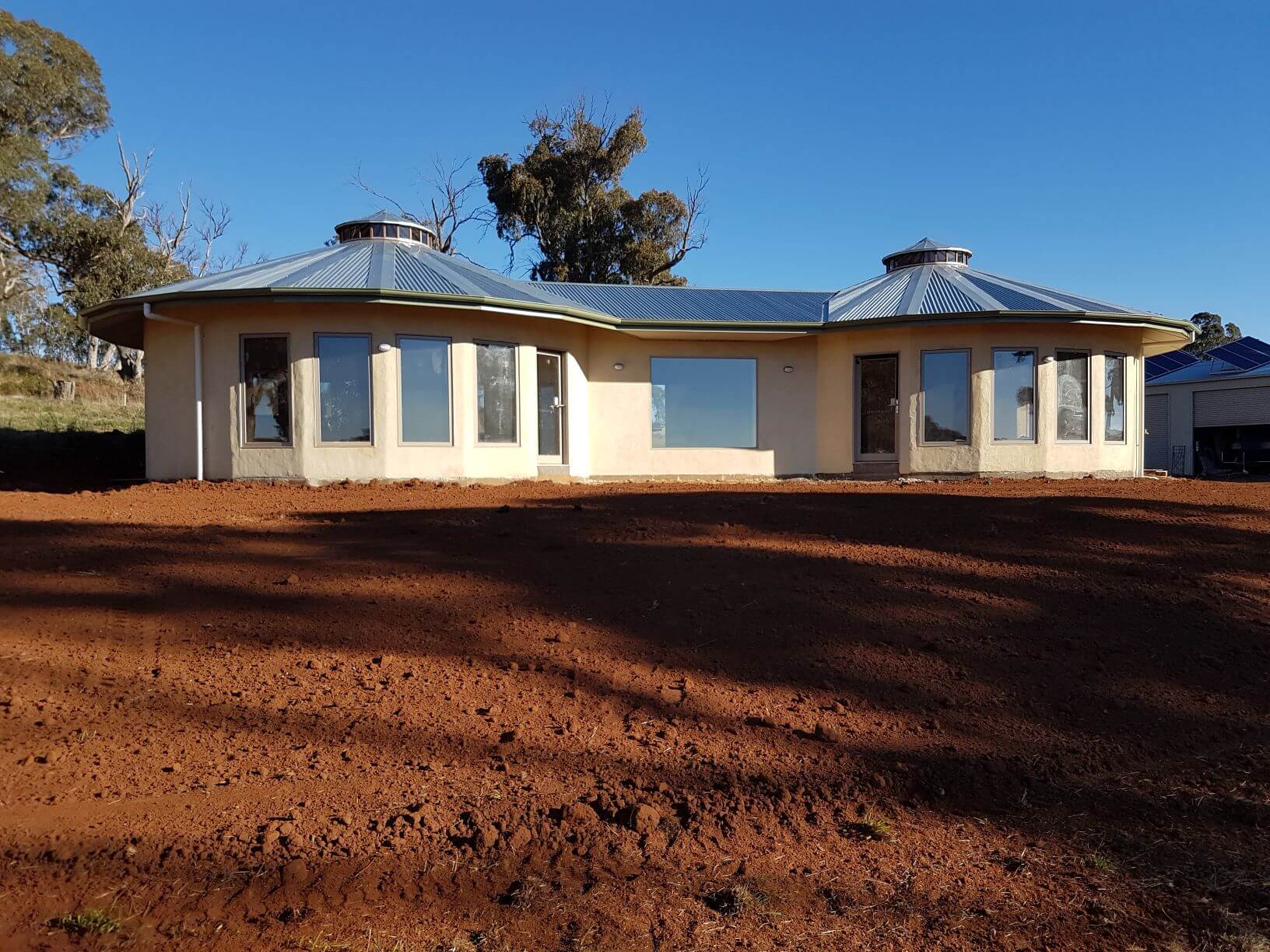 We have just completed building two x 8m round buildings co-joined into one home. We used a prefabricated roof and wall frame so that they could be erected on-site, saving energy and time.