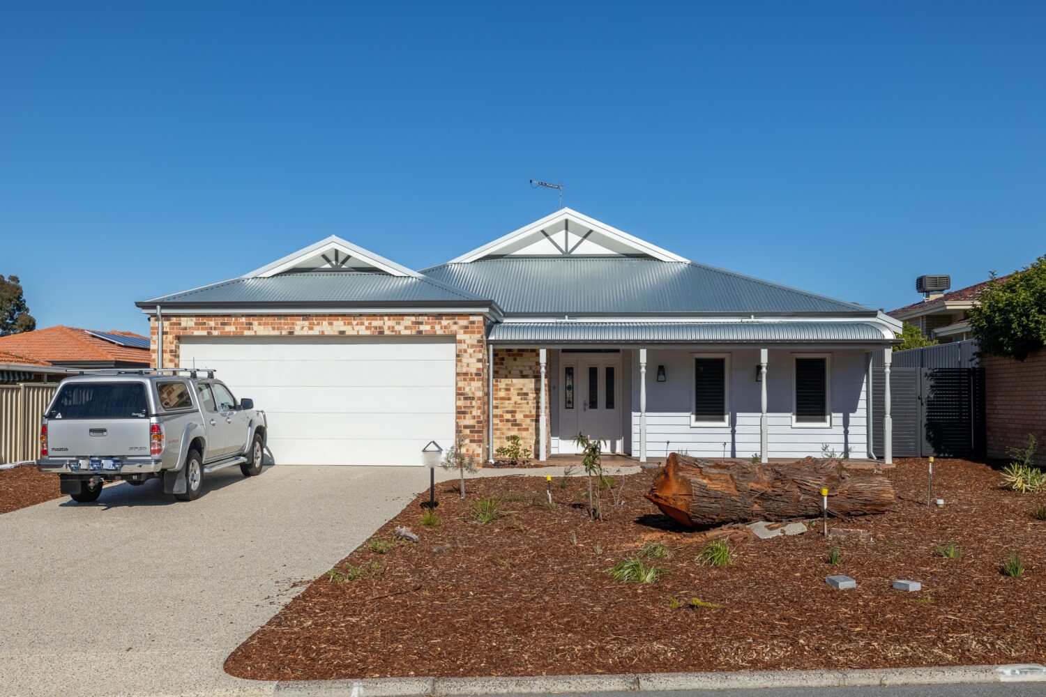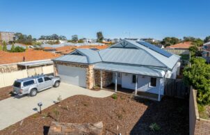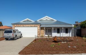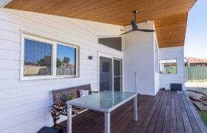 In true West Australian architectural style the front of the home is simple and inviting with a traditional bullnose verandah in recognition of the need for protection from harsh sun but providing an inviting space to meet and greet the neighbourhood. This beautiful verandah complete with a hardwood deck, turned posts and rustic wall lights is further complemented by the recycled brick garage adorned with beautiful feature gabled roof and traditional Zincalume roof sheets. Again, a connection between old and new through both design and materials.