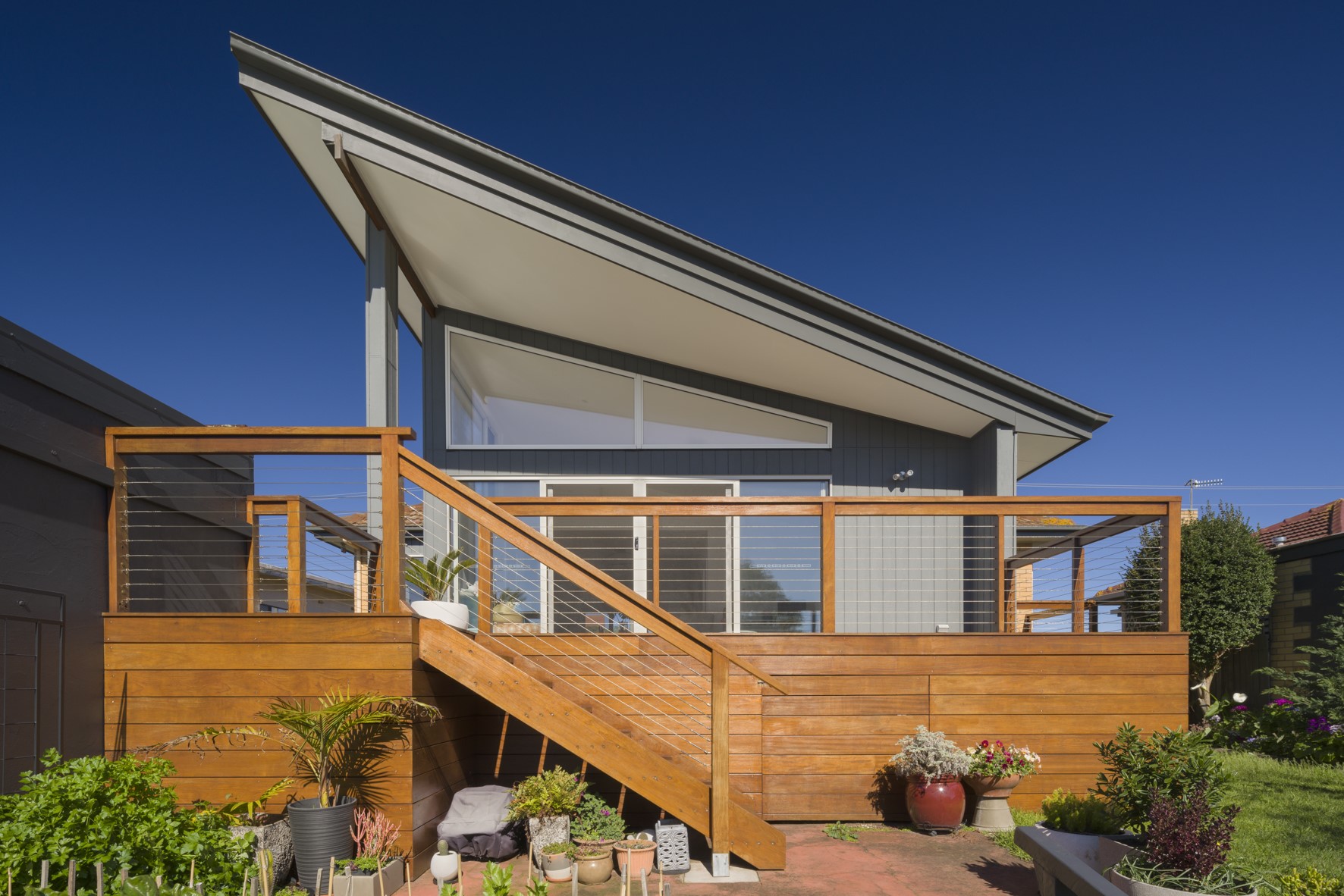 A 1960’s cream brick renovation into a light filled open plan home. Not much appears to have changed externally, however windows were replaced with larger double glazed units, underfloor insulation, external wall insulation and roof insulation was added to make this home perform at a high level in winter. Hydronic heating keeps the home at a constant temperature and the north facing addition acts as a sun trap in winter.