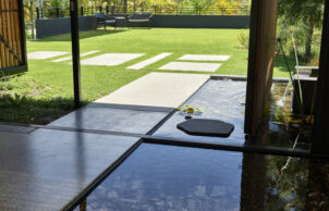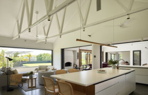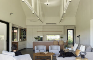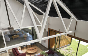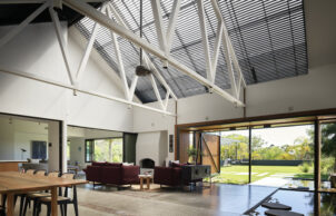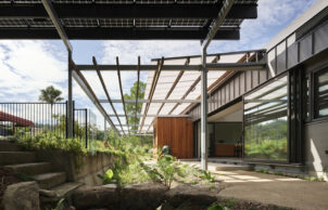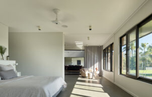 The large central courtyard helps to control the climate through the home: it allows an outdoor lifestyle in inclement weather and to allow both sides of the home to be left open for better cross ventilation.