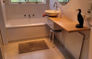 We have previously designed and built 2 passive solar homes, but when we retired to Kingston Beach our chosen abode was the opposite to being energy efficient. It didn’t even face the right direction! But it was in the right location! However, we gutted the interior and swapped a bedroom with a living room (with double glazed French doors), installed ceiling insulation, solar panels and a heat pump, with timeclocks for hot water and washing. We also own 2 electric cars. Our power bill for the past 12 months is in credit. So we are running 2 cars and a comfortable home for FREE! Our home had to be suitable for us as we age-in-place. We feel that our home demonstrates what can be achieved in an ordinary suburban Unit with thought and planning.