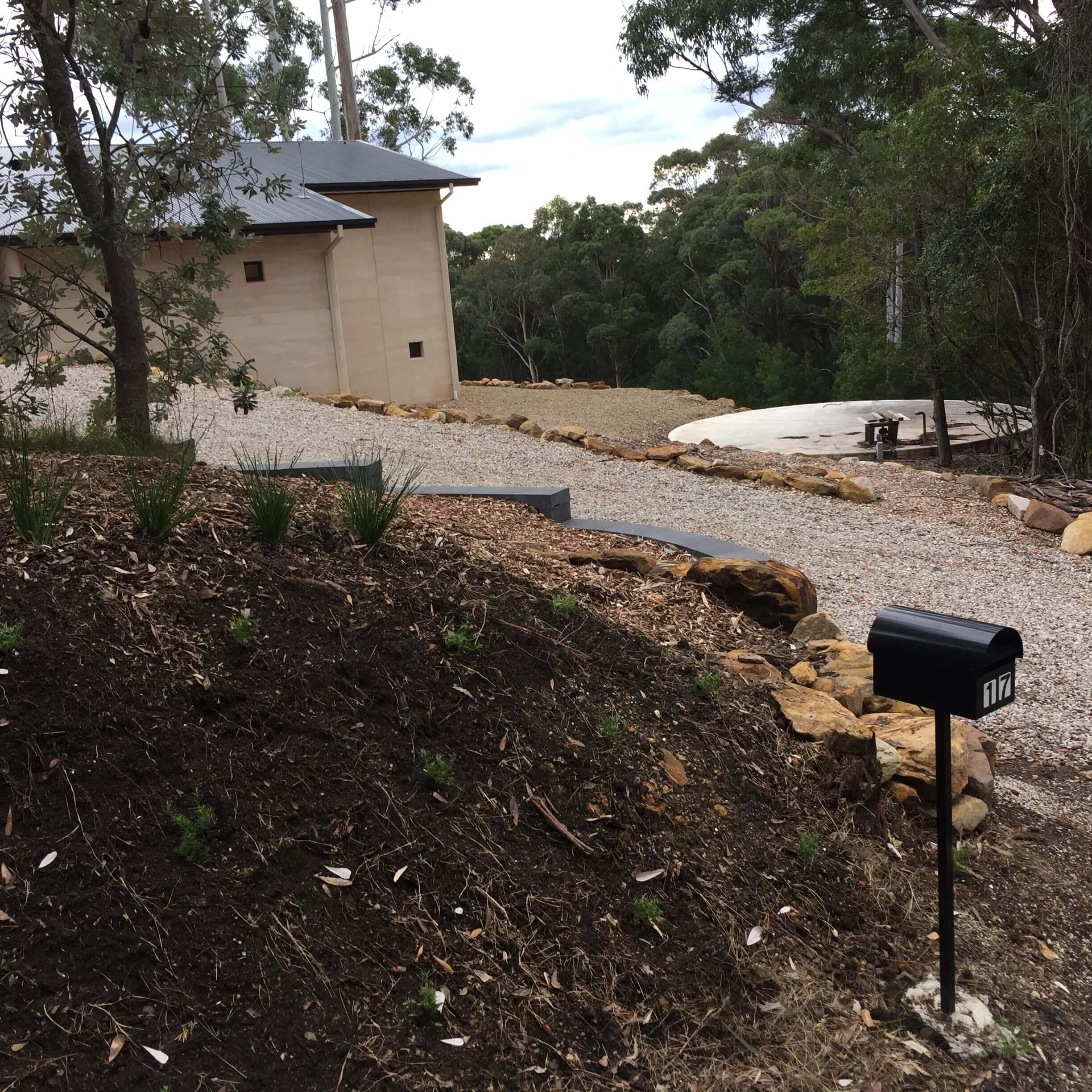 Sandstone boulders excavated from site used as retaining walls