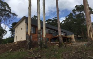 Rammed earth house, three levels on 1.6 hectares; mostly natural bush including koalas & wallabies