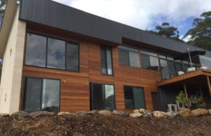 Blackbutt timber flooring  throughout and external cladding to back of house