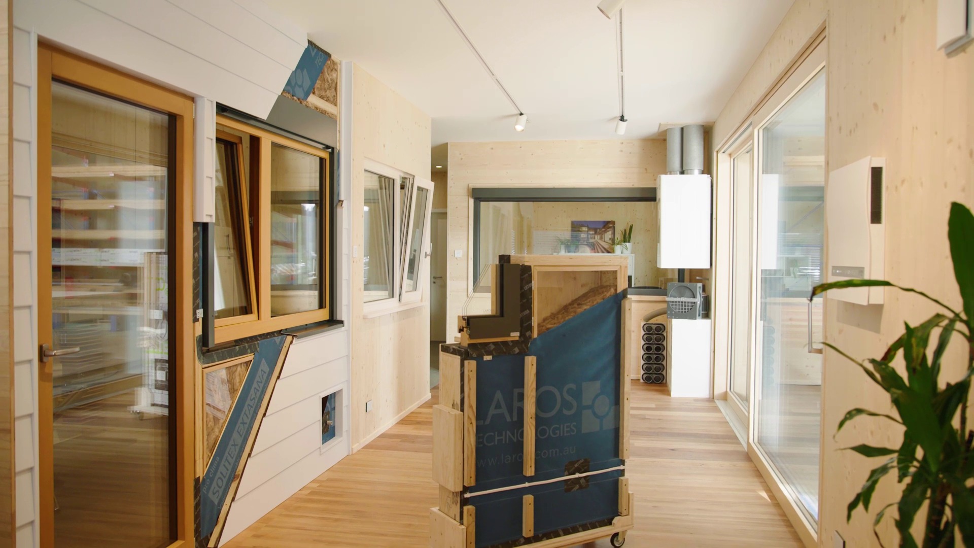 LAROS have been Passive House advocates and supplier of PH advice and products for over a decade. Our new location allowed us to build our own Passive House within our typical Australian commercial shed, allowing us all year comfort and climate resilience in our new compact office space.