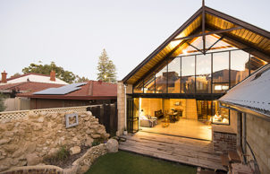 Situated in a Fremantle heritage precinct, sandwiched between Wray Avenue and South Terrace, “LittleHouse18” on Little Howard street is an owner-build project that sets out to combine the challenge of building a contextually compassionate new home with a myriad of sustainable attributes. In a tiny one-way street flanked with 1890s terrace cottages and opposite one of Fremantle’s earliest bakeries, Little House is built of local quarried limestone and architecturally pays tribute to the horse stables that preceded it.