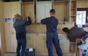 As much as possible, materials have been reused from other buildings, such as 80-year-old roofing sheets used for an external wall, the kitchen cabinets, timber decking used as a wall cladding, and some double-glazed windows from a demolition site. We have built some items ourselves such as the concrete benchtop decorated using found objects.