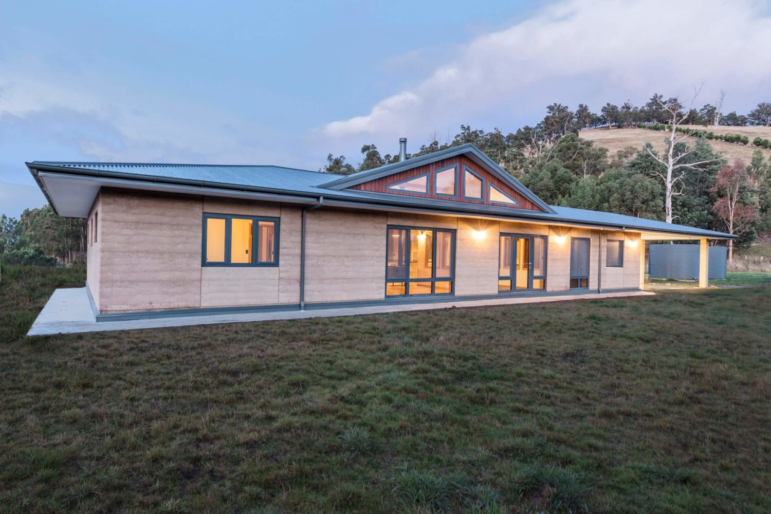 • Internal – timber framed insulated plasterboard. Exterior- Insulated Rammed Earth