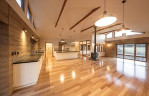 • This home was designed with modest energy efficiency goals in mind but after construction commenced was transformed following the stringent German Passivhaus guidelines, although not a Certified Passive House the home meets or exceeds the standard in some areas such as superior airtightness (fabric Blower Door test of 0.48 air changes/hour ACH), German Triple glazed timber windows (<U-0.85), Mechanical Ventilation with Heat Recovery (MVHR-PH Certified) and super insulation.