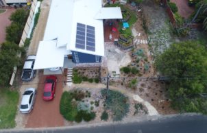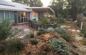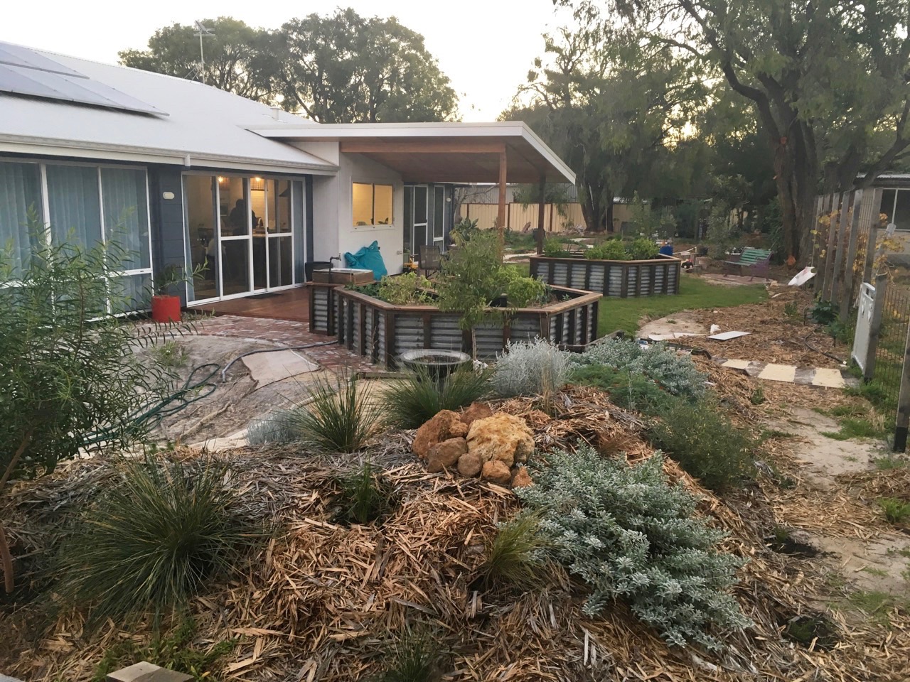 Our favourite part of the house is the interaction with the garden and home, this was design using permaculture practices. Recreation, study, security, food harvesting and native viewing are designed to be accessible and integrate with the living area. Our Grandad built the original fibro house on the block and my mum was born here, it was only by coincidence that we bought the house back into the family. We were able to repurpose and incorporate materials from the old house into the build, the decking area is built using the old jarrah framing, feature jarrah floorboard walls and an internal brick wall showcasing a brick etched with the words from an unknown author ‘I am mad’.