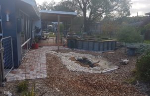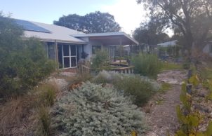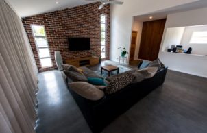 Our favourite part of the house is the interaction with the garden and home, this was design using permaculture practices. Recreation, study, security, food harvesting and native viewing are designed to be accessible and integrate with the living area. Our Grandad built the original fibro house on the block and my mum was born here, it was only by coincidence that we bought the house back into the family. We were able to repurpose and incorporate materials from the old house into the build, the decking area is built using the old jarrah framing, feature jarrah floorboard walls and an internal brick wall showcasing a brick etched with the words from an unknown author ‘I am mad’.