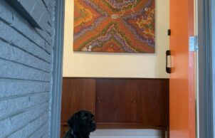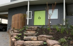 The owners sought to accentuate the mid-century aesthetic throughout the project including in exterior colour selection and interior design (by Greenroom Interiors) and garden design (Wells Design Landscapes & Gardens/Maple Leaf Gardens).