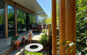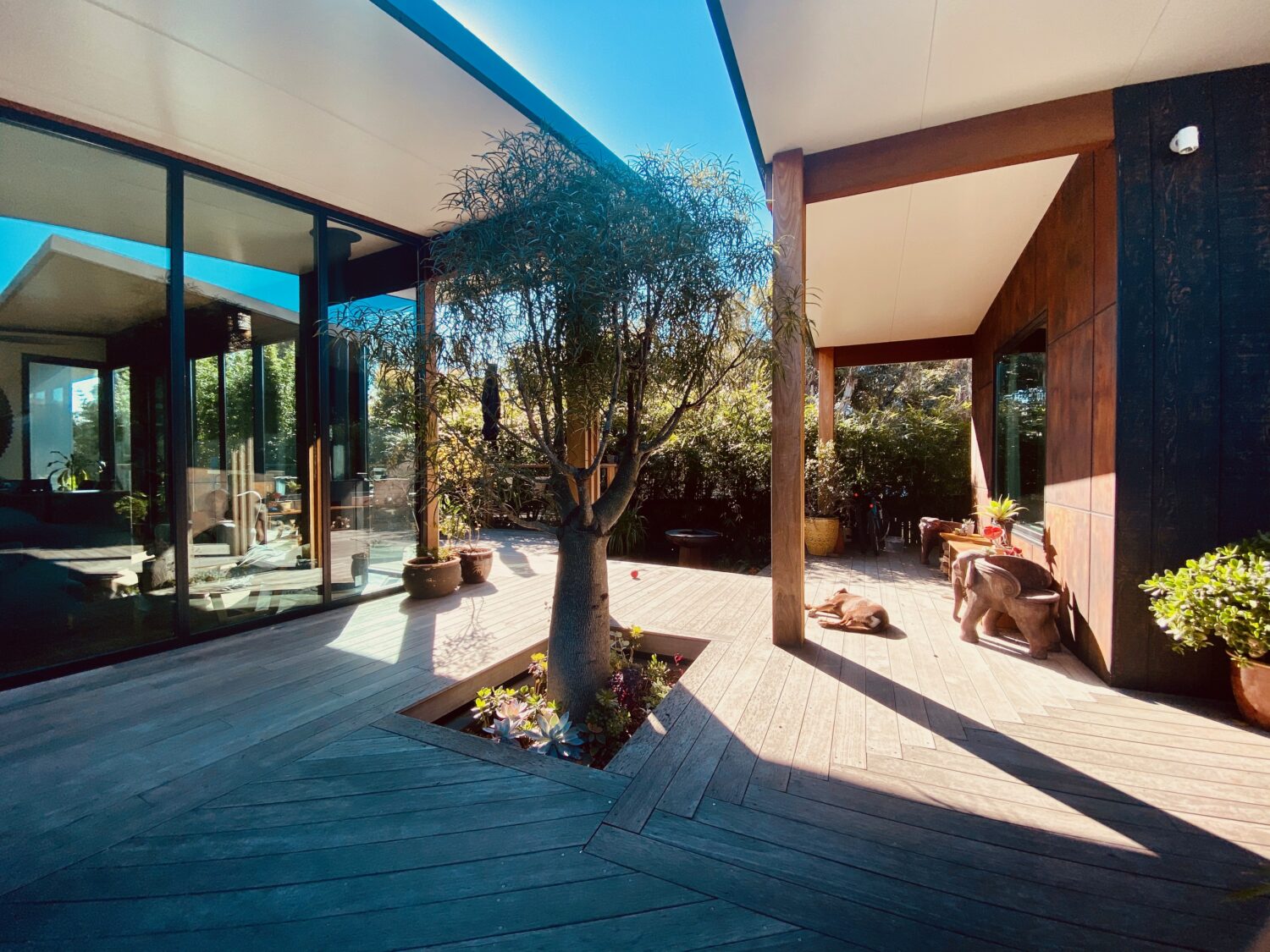 Based around sustainability, longevity, energy and water efficiency, solar passive and biophilic principles with respect for the earth and elements, it’s beautifully comfortable all year round. Facing north, the home is immersed with warmth and light from the sun, while being shaded and cooled in summer by large eaves and positioned to take advantage of prevailing winds.