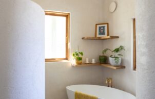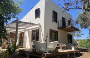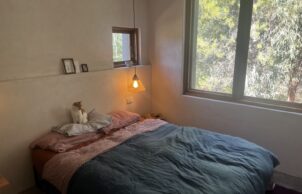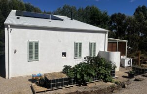 Located in Castlemaine, Central Victoria, the house was built by Joe D’Alo of the Hemp Building Co from Kyneton in 2022 – 2023. The house achieves a 8.5 NatHERS rating, is north orientated, has a 6.6kW Solar System, a 10,999L rainwater tank and 4 and 5 WELS tapware. It features second hand materials and fixtures such as timber flooring and shelves, lighting fixtures and 3.36m long Corian kitchen bench. Tapware and tiles are Australian made while the majority of the furniture is second hand and up cycled locally. The hemp was sourced from the VIC/SA border. The owner went on to study Building Design and launch Design Green Studio which will be operational 2026 onwards for eco, residential builds and renovations.