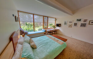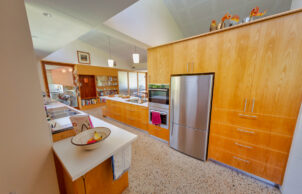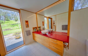 The house is a self build designed by architect Robert Thorne. We wanted a home that would sit comfortably in the rural landscape, with northern views and would provide thermal comfort with thicker than usual walls/ ceiling allowing for bulk insulation, polished concrete floors as a heat sink and solar hydronics floor heating to boost warmth in the cooler months. Roof angle was subject to a fair amount of research and it was decided to angle the roof up to the south to control sun exposure on the northern face and provide southerly high windows for light and ventilation. We had learnt from past projects that a well insulated envelope was vital for winter warmth and good cross flow ventilation was required for summer and we incorporated these ideas into the project. North and western sun angles were assessed to limit summer sun exposure. We were determined to get this right as we had both previously lived in houses in Canberra that were cold in winter and hot in summer. The main walls of the house are 200mm thick filled with R5 Batts and plywood applied to both sides. The ceiling is R6.8 and is completely sealed. Acoustic panels were used extensively to limit noise within the home. Timber framed double glazed windows and bespoke fine timberwork made by the owners are featured throughout the home. Privacy with views rural land and mountains beyond is a bonus. The skills and interests of the owners has determined the floor plan with workshops for hobbies , a versatile floor plan and areas for entertainment and a kitchen garden. A large roof area is an efficient rain harvester.