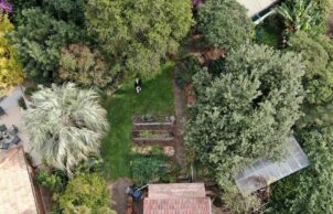 Located on a steep hill, the Moss House garden is an example of a 13-years-old vibrant, sustainable permaculture property, designed with the primary goal to provide the owners with food, medicinal and fibre plants.
