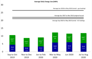 During the first year of living in our solar passive house we have established that we could live without any air conditioning or space heating and our energy use can be very low. Our total energy use is less than half what it used to be, and more than half of that is sourced from our solar panels. Our home has been lovely to live in and we couldn’t be happier.
