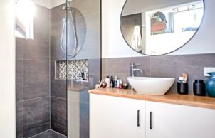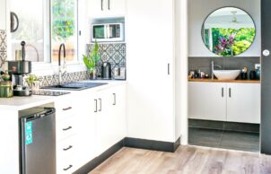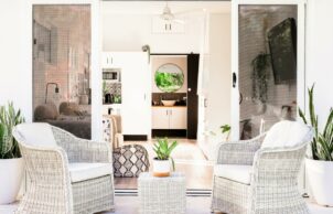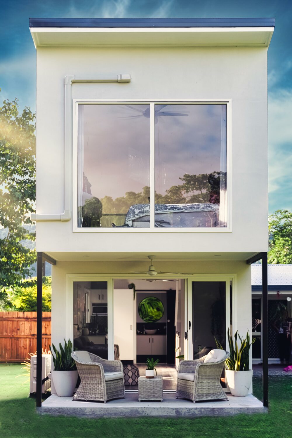 Our tiny home is built on 36m2 footprint using a lightweight construction with the use of as many renewable resources as possible. This small but functional space comes without sacrificing the luxuries of the modern home, with considerably less impact on the environment & lower living expenses. This modern open plan design comes with high ceilings, light colours used throughout to give it a feeling of more space and help reflect the heat. Lightweight construction helps the home cool down quickly at night, walls & ceiling fully insulated to help reduce the heat in our tropical climate. It has energy efficient led lighting throughout. This tiny home had to be joined into the existing dwelling due to council easements and other council requirement all though it was designed to be a free-standing dwelling.
