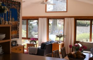 We have lived in our home for almost 30 years, and in that time have renovated with a focus on sustainability and a healthy indoor living environment. In 1997, the house, built in 1964, was extended with a passive solar open-plan living/dining room, angled on the original house to face due north. The extension also included a new kitchen (still going strong) with plantation hoop pine plywood and solid hoop pine cabinetry, and a recycled timber benchtop, all finished at the time with natural Bio finishes. A year later, a Forbo Marmoleum floor (biodegradable linoleum made from natural ingredients) was laid in the children’s bedrooms, hallway and entry; 20 years later, it’s showing no signs of wear and tear. A 9000L rainwater tank was added to the garden and is used for irrigation.