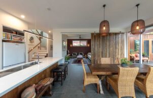 Insulation includes phase change material in the ceiling. Blinds to the west and eaves to the north. Overall 7.4 energy rating. Our 1920s brick home cracked up due to water leaking under the foundations and the only solution was to start again. The rebuild was finished in 2016.