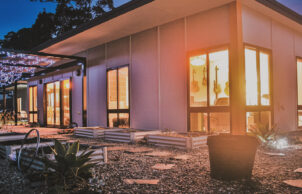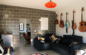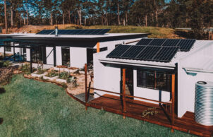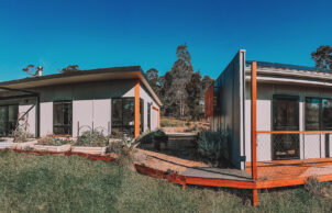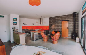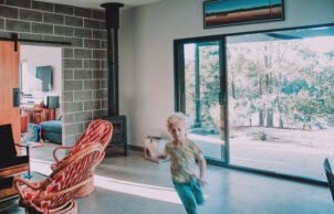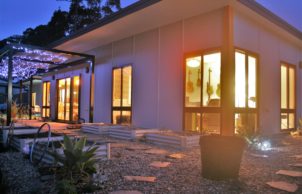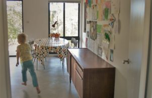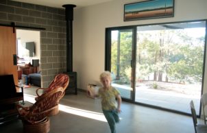 Paul designed this home for his family to showcase how specifying the correct materials can result in a sustainable house at no extra cost. The house features blockwork walls and an exposed concrete floor for thermal mass. A lot of work has been done to improve indoor air quality, with virtually no treated timber internally and low or zero VOC paints and sealers throughout. The stainless steel kitchen eliminated formaldehyde off gasses normally associated with kitchen cabinets, is easy to clean and reduces bacterial build up and it also looks pretty neat! This build proves you can be sustainable, have a smart looking home and stay well below the average build cost.